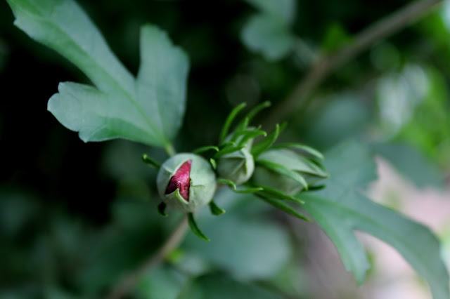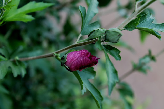 The Rose of Sharon (Althea hibiscus syriacus) has bloomed it's heart out for close to a month now.